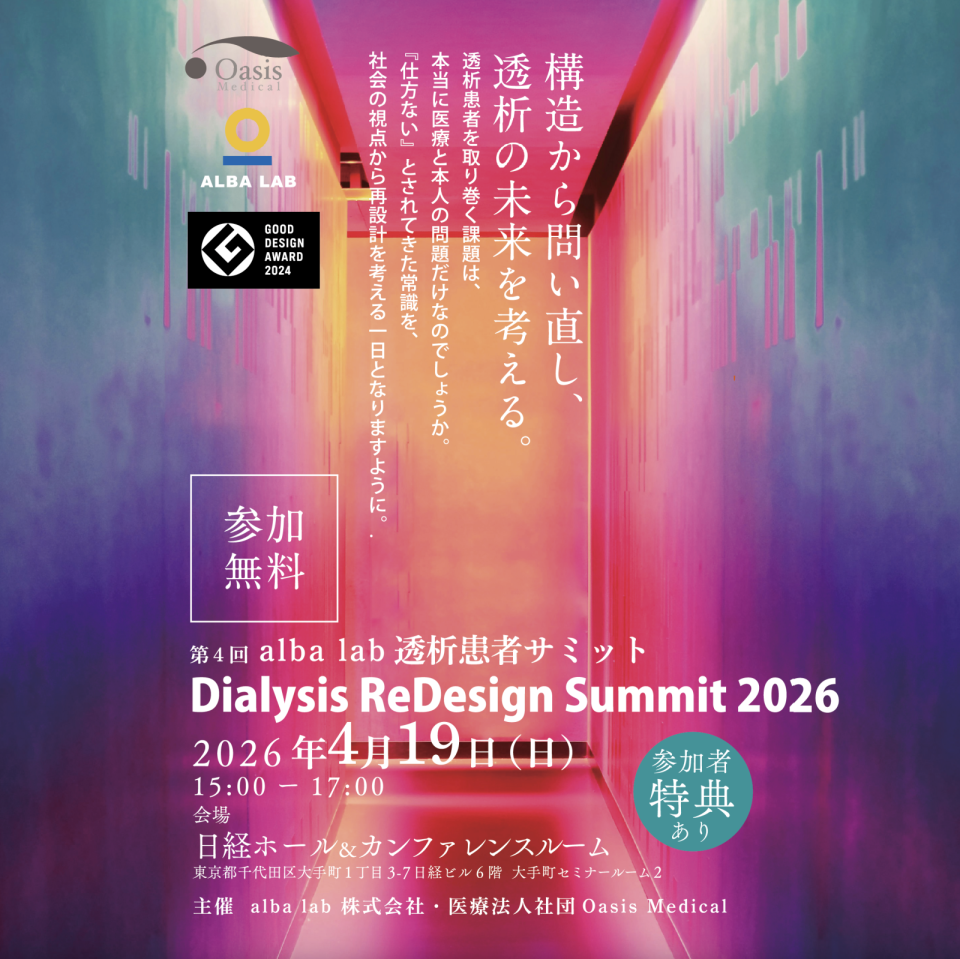 2017年よりOasis Medicalとalba labが共同で毎年開催しているOasis Forumは、毎回何十名もの透析患者さん・患者さんのご家族・医療者の方々にご参加いただいている、リアルで実用的な透析の知識・情報をお伝えするイベントです。