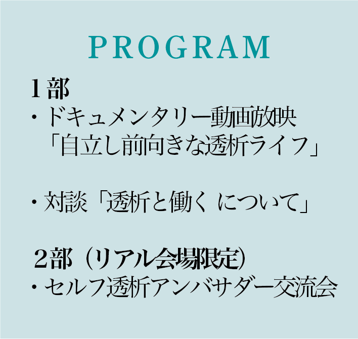 透析に縛られない幸せな時間が増やせるということ、それがあなたを含め誰にでも可能であることがお分かりいただけるはずです。